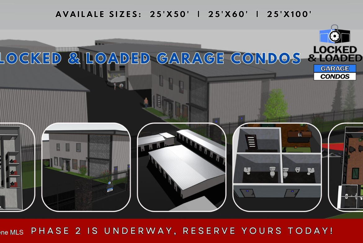 Discover the epitome of elite commercial luxury with our versatile Commercial Condos located within the GATED and highly secured Phase 2 of LOCKED AND LOADED GARAGE CONDOS… 32 UNITS TOTAL. Boasting customizable sizes … 25×50, 25×100, 25×60, and l00x100. Each unit offers superior comfort which includes a complete build out, R-32 ceiling insulation, R-19 insulation in walls, R-19 16’x14′ insulated door, an efficient 125,000 BTU gas heater, ample LED lighting throughout, advanced Z-WAVE security technology, 100 AMP panel, and ceiling fans. (200 AMP panel/Phase 3 power available in select units) Step into a world of opulence with access to the Owners only clubhouse, featuring a golf simulator, pool table, private locking liquor cabinets, lounge/bar area with TV and fireplace, a large conference room complete with Wi-Fi, printer/scanner, additional private offices restrooms, and a full kitchen. Conveniently located near the Idaho-Washington border. Phase 3 power.